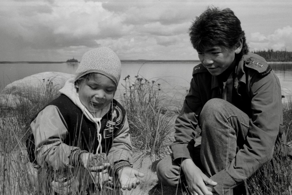 Ma première visite chez les Atikamekw a eu lieu en 1978. Le groupe de musique Ruine-Babines, auquel je participais occasionnellement, était invité au rassemblement d’été annuel, avec un système de son, sans faute! Nous nous étions rendus à La Tuque, où nous devions prendre le train jusqu’à l’arrêt de Wemotaci. Quand nous sommes arrivés, les organisateurs ont vite embarqué le système de son et nous, avons dû marcher jusqu’au village, tout en s’amusant de la situation. Le pow-wow avait lieu un peu à l’écart du village. On devait s’y rendre en camionnette. Tout le monde du village se pressait d’arriver pour assister à la course en canot, une tradition de longue date chez les Atikamekw. Il pleuvait un peu et il y avait une épluchette de blé d’Inde de prévue. Simon l’aveugle s’est assis par terre et a joué de l’harmonica. La pluie s’est arrêtée. Le spectacle a eu lieu le soir au centre communautaire.