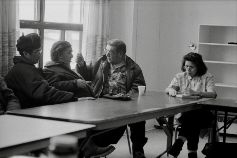 Pas très longtemps après mon retour à Montréal, un concours de scénarisation documentaire, auquel j’ai participé et gagné suite à ma proposition de synopsis, m’a donné l’occasion d’écrire un scénario de film documentaire qui me permettait de poursuivre cette relation de mise en valeur de l’histoire des Atikamekw d’Opitciwan que je trouvais absolument fabuleuse. Ce prix m’a permis de retourner au village d’Opitciwan, de rencontrer de nouvelles personnes et de visiter de nouveaux lieux en prévision d’un éventuel tournage. Si mon prix m’avait permis d’approfondir ma recherche et d’écrire mon scénario, mon projet n’avait pas été retenu pour aller en production. Il a fallu la détermination de Sylvain L’Espérance de la maison de production Les Films du Tricycle pour arriver à monter le financement. Avant d’aller tourner, j’avais envoyé mon scénario au chef du village, M. Simon Awashish, et j’avais demandé à Thérèse Niquay, toujours en poste au Conseil de la nation Atikamekw, si elle pouvait m’inviter à une de ses rencontres avec les aîné.e.s afin de leur expliquer mon projet de film. C’est elle qui m’a servi d’interprète, parce que, si la relation avec les jeunes était facilitée du fait qu’ils parlent tous français, il n’en était pas de même avec les aîné.e.s qui continuaient de parler presqu’exclusivement l’atikamekw.